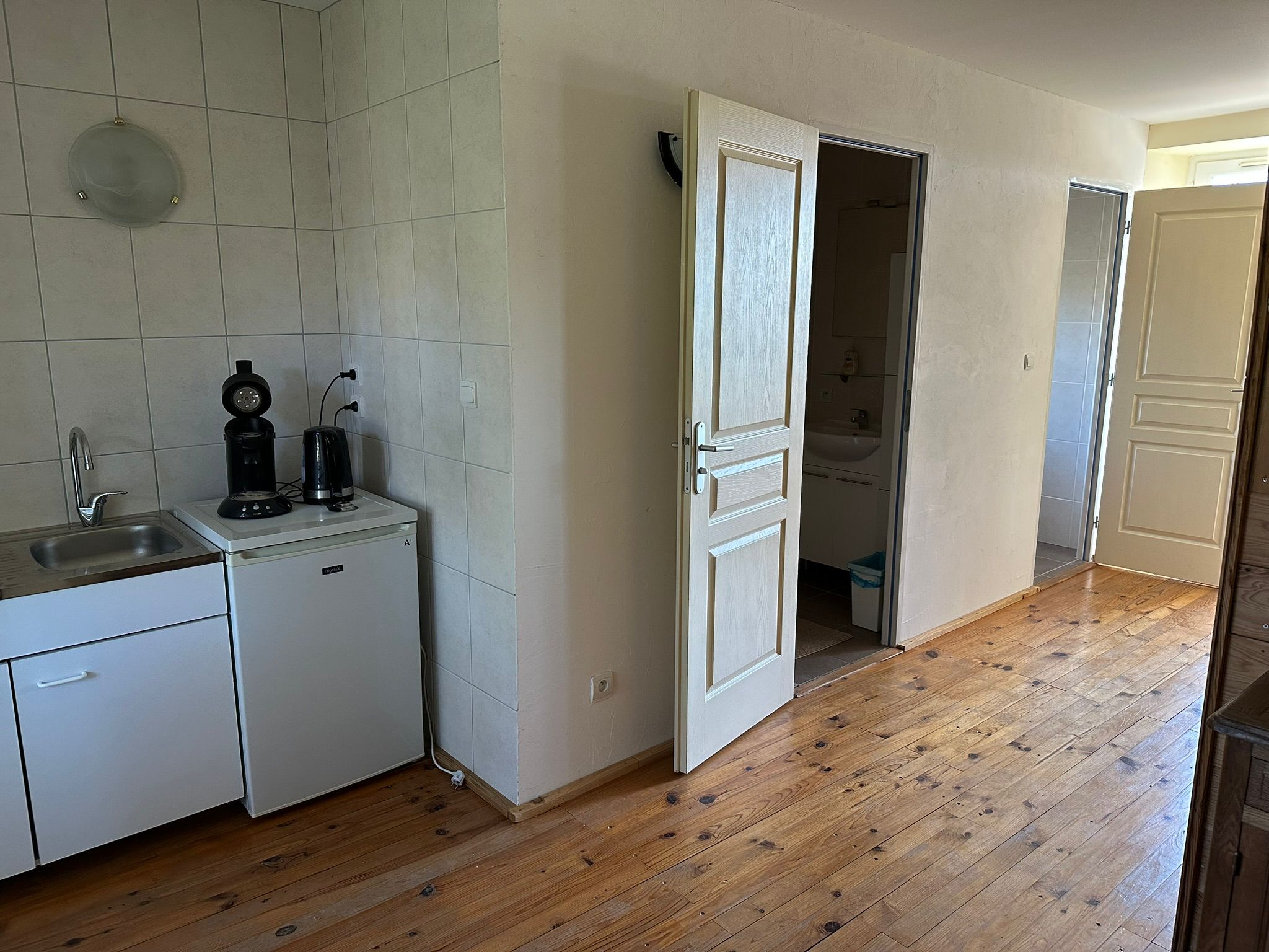 Een koelkast, senseo en een waterkoker staan ter beschikking.